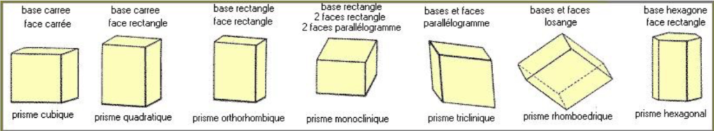 Ces sept systèmes sont les suivants: cubique, hexagonal, tétragonal, trigonal, orthorhombique, monoclinique et triclinique. Et en lithothérapie analytique, il y en a un 8e, ajouté par Michael Gienger: le système amorphe, qui caractérise l’absence de système cristallin (comme chez l’obsidienne, la moldavite, l’opale,…).