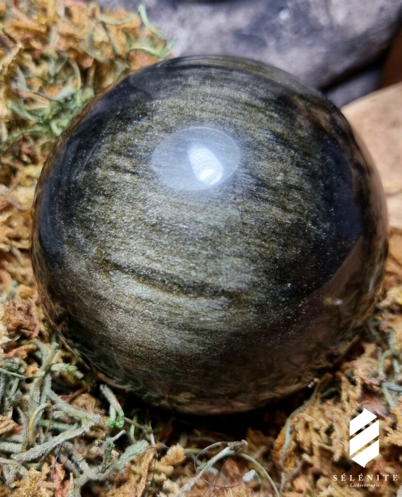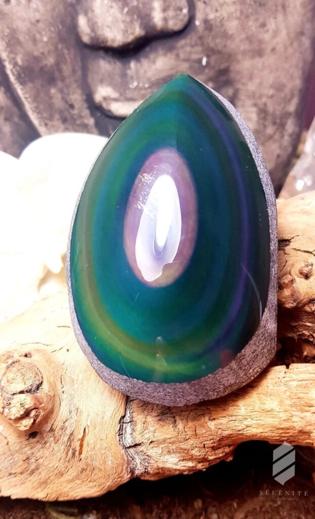 Mais d’où vient cette crainte ? De cet “oeil”, qui peut sembler omniscient ? D’anciennes légendes, qui font remonter du fond des âges des visions de miroir occulte ? Soyons clairs: si l’obsidienne oeil céleste n’est pas une pierre “facile”, elle n’est pas pour autant dangereuse ! Par contre, elle pourra se révéler inadéquate lors de certaines périodes. Pourquoi ? Parce que l’obsidienne va nous confronter à notre part sombre. parce qu’elle sait que si nous restons incapables de l’intégrer, nous ne serons jamais vraiment nous-mêmes, et jamais souverain en notre propre royaume. Elle va donc nous obliger à regarder dans le puit de notre âme, et nous pousser à faire notre examen de conscience, créant par là, inévitablement, une crise d’introspection susceptible de nous couper des autres. En contrepartie, quelle récompense quand la réussite couronne nos efforts ! Quelle forme d’invincibilité revêtons-nous quand nous nous acceptons enfin tels que nous sommes ! Sans compter que l’obsidienne oeil céleste fait partie des pierres de protection les plus fortes: une pierre-miroir.